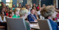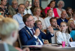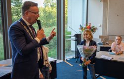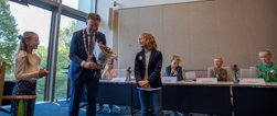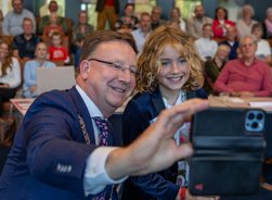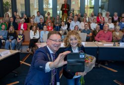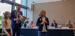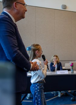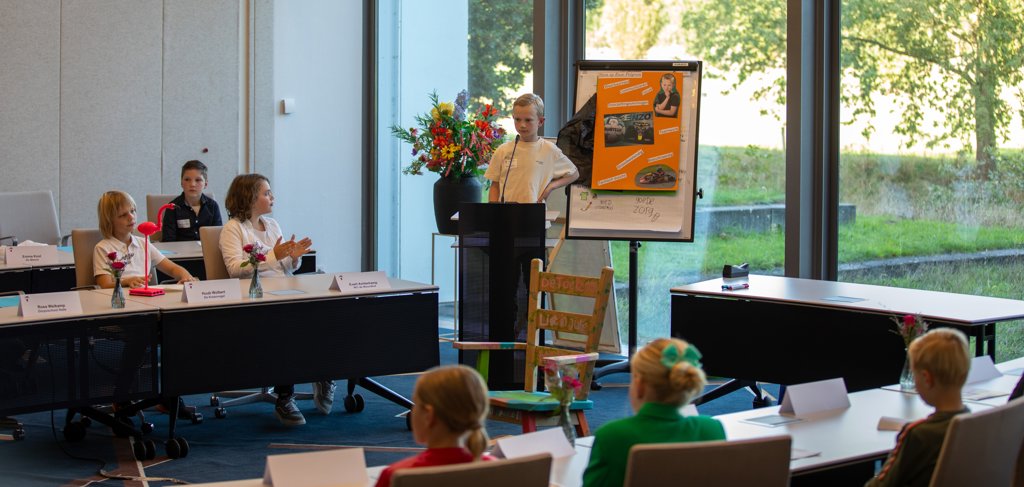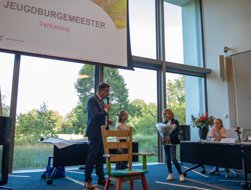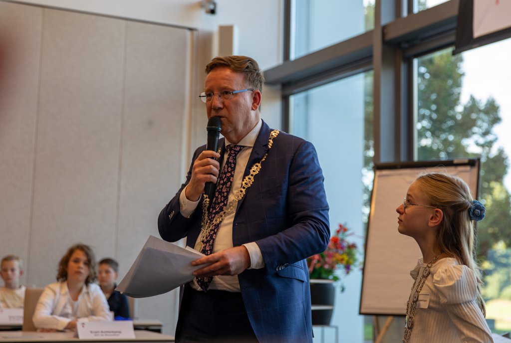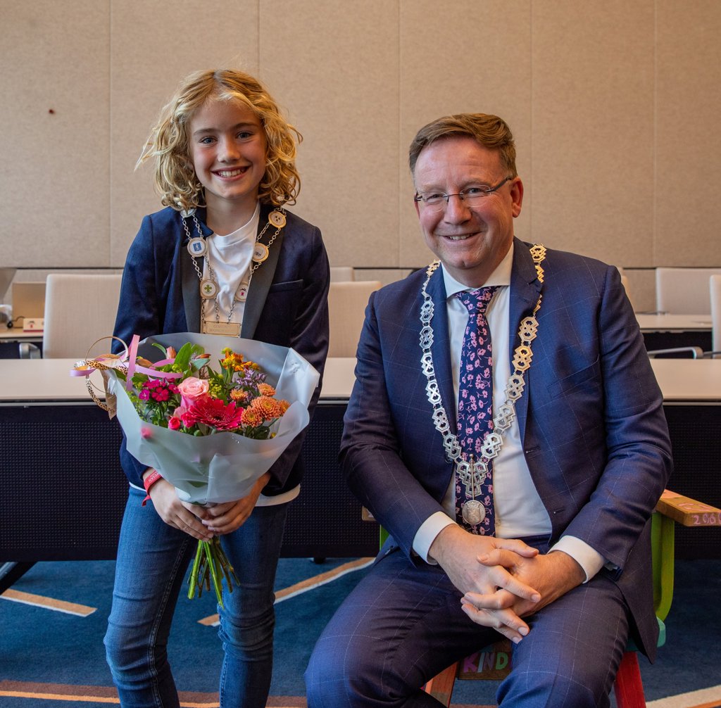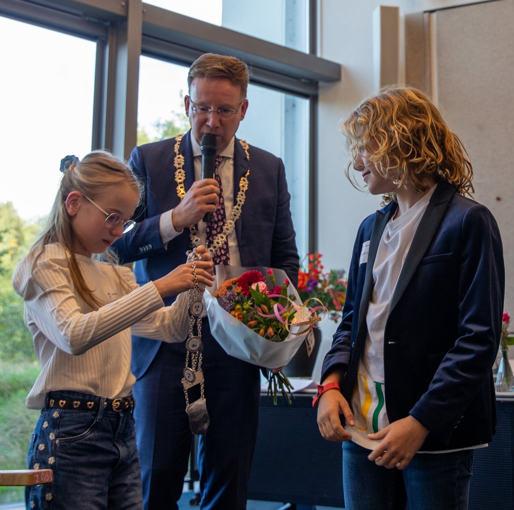 De nieuw? gekozen jeugdburgemeester van Bronckhorst is Kjell Leemans van basisschool de Klimtoren! Kjell is gekozen in het gemeentehuis in Hengelo uit 15 kandidaten, alle leerlingen uit groep 7 van de basisscholen in de gemeente. Zij hadden zich aangemeld via een brief met een motivatie. In een presentatie werd onderbouwd waarom zij vinden daarvoor geschikt te zijn. Alle vijftien presenteerden zich voortreffelijk. Voor de jury, die bestond uit burgemeester Patrick van Domburg, wethouder Hans Puijk en huidig jeugdburgemeester Lara Bouwman, een moeilijke opgave om tot een keuze te komen. Kjell neemt in oktober de voorzittershamer over van Lara. De overige deelnemers mogen plaats nemen in het kinderparlement, dat komend jaar door Kjell wordt voorgezeten. Het ?jeugd burgemeesterschap is voor een periode van 1 jaar. De taak van de jeugdburgemeester is geen wassen neus. Hij/zij is aanwezig bij activiteiten zoals de uitreiking van het jeugdlintje en ?bij de dodenherdenking. Ook kunnen kinderen bij de jeugdburgemeester terecht met ideeën voor?/over de gemeente, die dan besproken worden met burgemeester Patrick van Domburg. Met een jeugdburgemeester krijgen kinderen een duidelijker stem en kunnen zij kennis maken met het reilen en zeilen van de gemeente. Lara is nog jeugdburgemeester tot november 2025. De officiële benoeming van de nieuwe jeugdburgemeester, met de uitreiking van de speciale ambtsketen, is tijdens de raadsvergadering van donderdag 9 oktober.?
